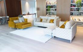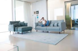 Une nouvelle typologie d’assise est née avec Helsinki, le You&Me, un fauteuil généreusement proportionné qui nous permet d’installer confortablement une ou deux personnes en créant un espace de détente parfait. Grâce à cette nouveauté, à son design léger et à son grand confort, Helsinki est rapidement devenu un de nos produits le plus célèbre. Tant le You&Me que le canapé sont décorés d’une grande quantité de coussins qui, en plus de l’esthétique, permettent de créer beaucoup de combinaisons de tissus différentes et qui apportent une commodité incroyable.
